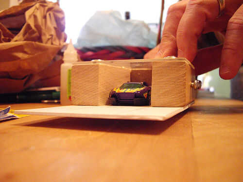 Este prototipo es un lanzador de coche, pero podría modificarse fácilmente para lanzar 2 coches a la vez para propósitos de carreras... que probablemente será el próximo proyecto! También está diseñado para que usted puede adjuntar a sus pistas de hot wheels (no mostrados aquí).