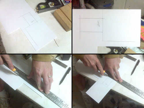 Utilizamos un trozo de plástico rígido, sobre el grueso de cartulina, pero algo rígida y delgada como eso podría funcionar. Mida alrededor de su bloque de madera para averiguar el tamaño, bosquejo sobre el plástico y cortar con un cuchillo de corte de caja.
