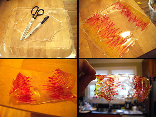 Tuvo una gran tapa plástico #6, por lo que llamas en él con sharpies de color (porque las llamas son cool!) y lo redujo. (Ver aquí para obtener instrucciones sobre cómo hacer esto.