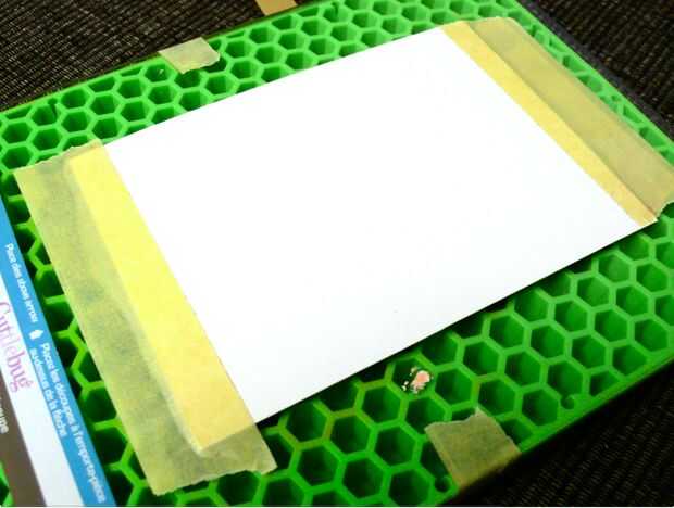 Para mejores resultados, tomar al menos 2 o 3 pedazos de papel vas a imprimir en (utiliza tarjetas de papel fuente A2) y con cinta adhesiva a la placa B. Esto proporciona un cojín y una impresión más profunda.