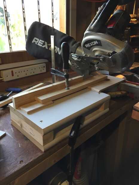 Ahora cortar a todas tus prendas, creado una plantilla de caja de la Sierra de cortar como las piezas son tan delgadas que tiende a cortado irregularmente o hacer articulaciones impares. Esta plantilla básicamente permite mantenga presionada la madera más cerca de la hoja y mantenerla plana contra la base de cortar metal y cerca.