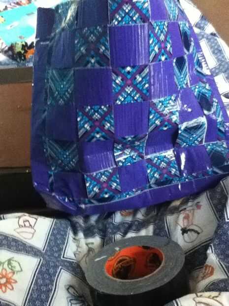 esta es mi última creación, un 15 "x 15" x 4 "bolsa de bolsa/bolso tejido del conducto cinta. ¡ Es super robusto y bastante impresionante!Paso 1: Elementos necesariosAprox. 120 yardas de cinta para ductos (utiliza 3 colores diferentes con 2