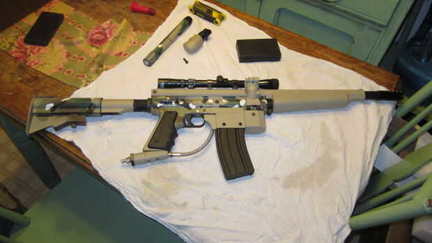 3) usando el puerto de carga actual como guía, perfore un orificio en ambos extremos del puerto con una broca de 1/4" a través de la mitad derecha.