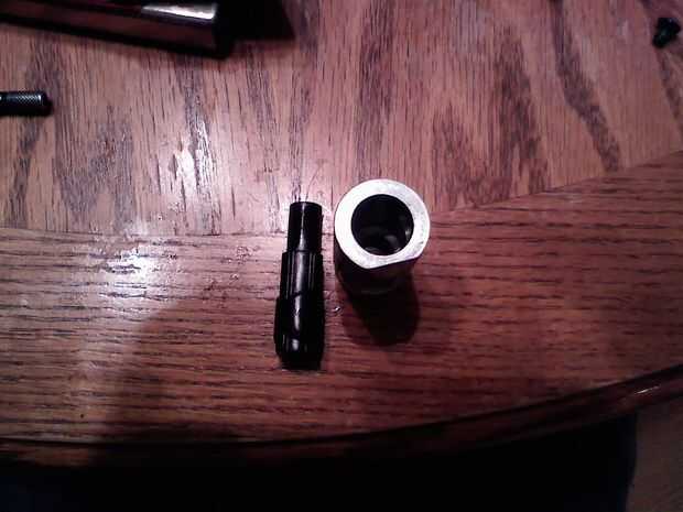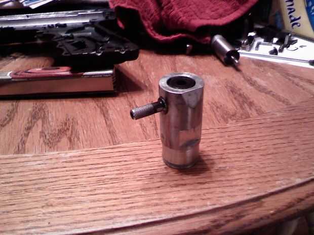 Primero debe desmontar el martillo por sacar la palanca de carga y sacar la guía de resorte plástico pequeño dentro de persuasión hacia fuera con el destornillador o solo la sacudida hacia fuera.