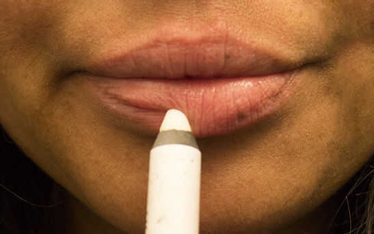Antes de trabajar con los labios, asegúrese de que la piel es hidratada y humectada (pero no seco... humectante o residuo de bálsamo del labio debe ser en los labios, de lo contrario, el trazador de líneas/lápiz labial no se aplican o para permanecer encendido muy bien).