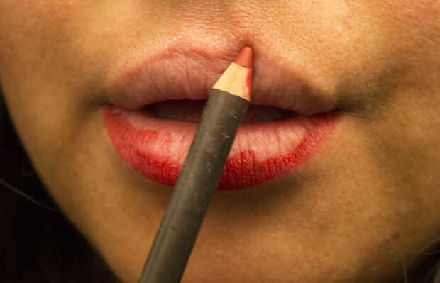 Llenar tus labios con delineador. Cuando la línea del labio de la guarnición, considero que no tira los labios enseñados ayuda a mantener una mejor forma. Uso un montón de trazos cortos cuando recubren el labio y luego seguir por los grandes trazos largos al llenar. Me gusta el color en el labio entero en lugar de sólo la guarnición.