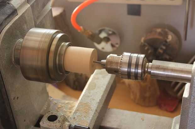 El agujero más pequeño se va todo el camino a través de la pieza de trabajo. El segundo agujero va en aproximadamente 1/4"(esto es para ocultar el nudo que atará para impedir que la cadena tire completamente).