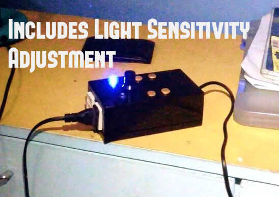 Puede ser utilizado en el exterior o en cualquier lugar cerca de una ventana donde la luz del sol es visible para el control de sus resultados. También hay un potenciómetro para ajustar su sensibilidad a la luz. Esto es muy útil si estás cansado de dar vuelta y apagar tus cosas durante el día!