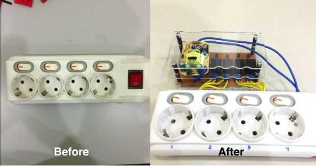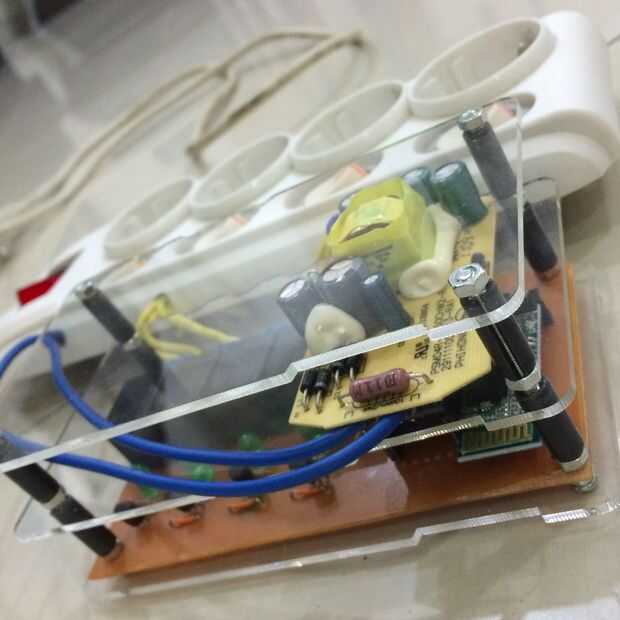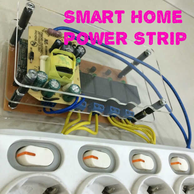 Tira de la energía de casa inteligente es un android o iDevice controlable tomacorriente. Puede activar las salidas individuales con cinta adhesiva un botón de tus gadgets. Pasé cerca de $32 este proyecto.
