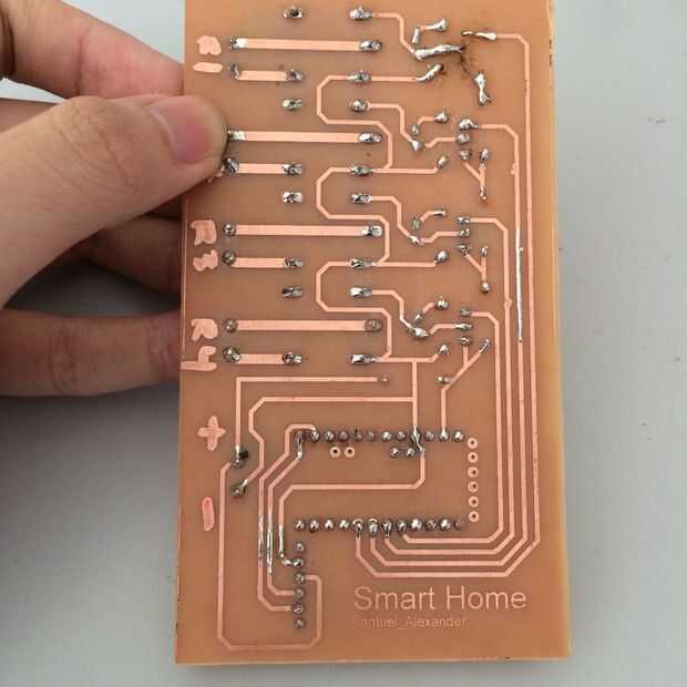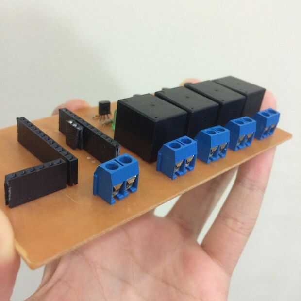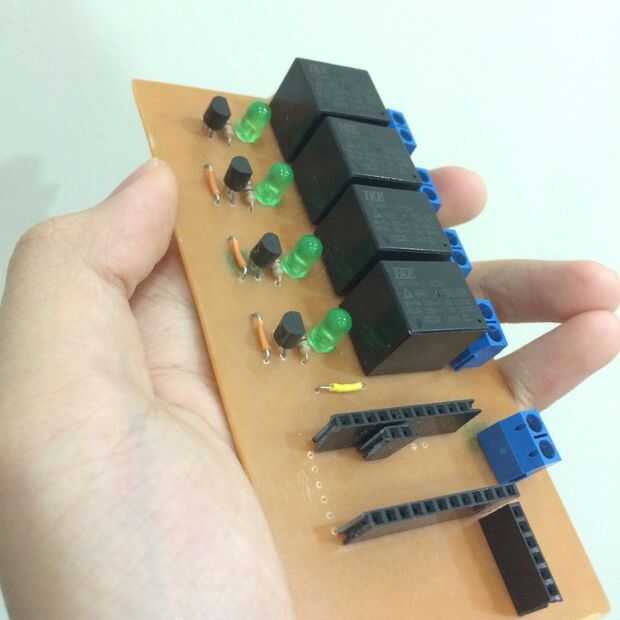 - Después de terminar la perforación le debe soldar todos los componentes electrónicos, pin header y algunos cables de puente.
