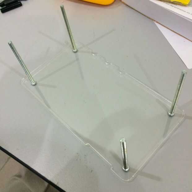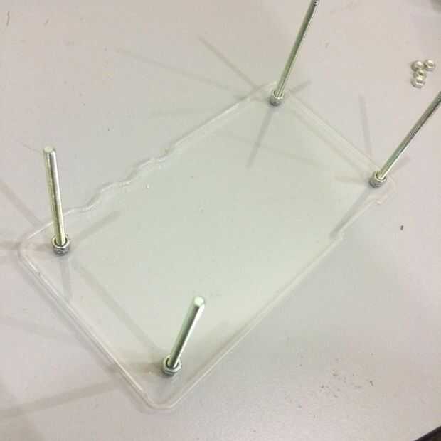 - Inserte cuatro tornillos en los orificios del acrílico.