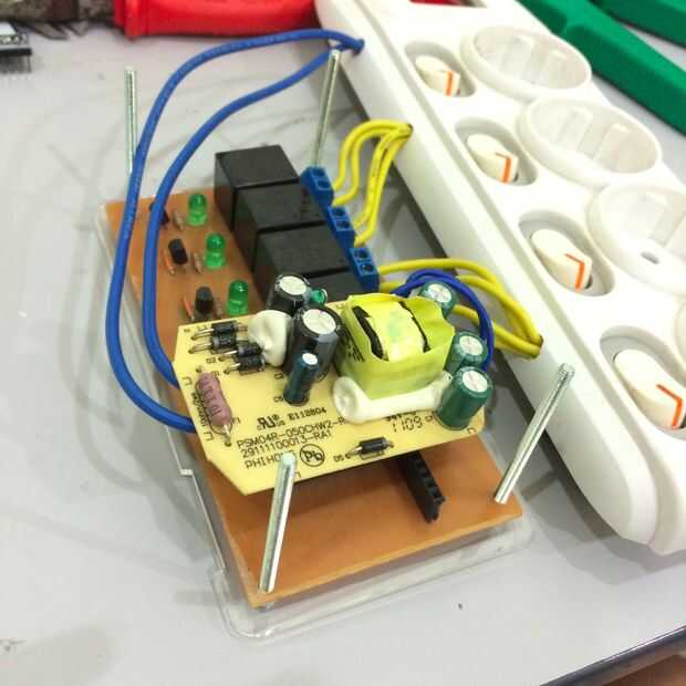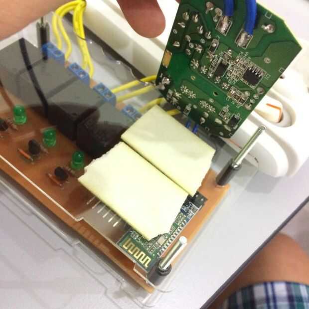 - Apriete los tornillos con tuerca. Utilice los tornillos desde el acrílico y el PCB (la parte con curvas cerca del bloque terminal del relé) y la otra parte cortada cerca del módulo de bluetooth de la marca.