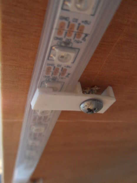 He comprado una tira de LEDs de RBG de Adafruit de Phenoptix. Vienen con una funda protectora de silicona para detener la humedad dañar ellos o cortocircuito los electrodos metálicos. Esto es genial pero les hace muy difícil de montar ya que descarta cinta adhesiva o pega más.