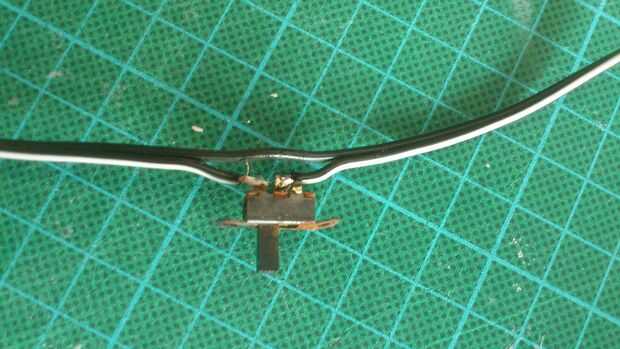 A menos que estés realmente seguro de sus habilidades de soldaduras, recomiendo el cable cerca el contacto para reducir la tensión en la soldadura del contacto de la cinta. También conduje el alambre detrás el soporte para cables.