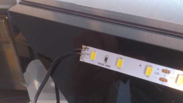 En primer lugar, cortar la tira de LED a la longitud deseada. Asegúrese de que cortar en una de las marcas de corte con los contactos de ellos.