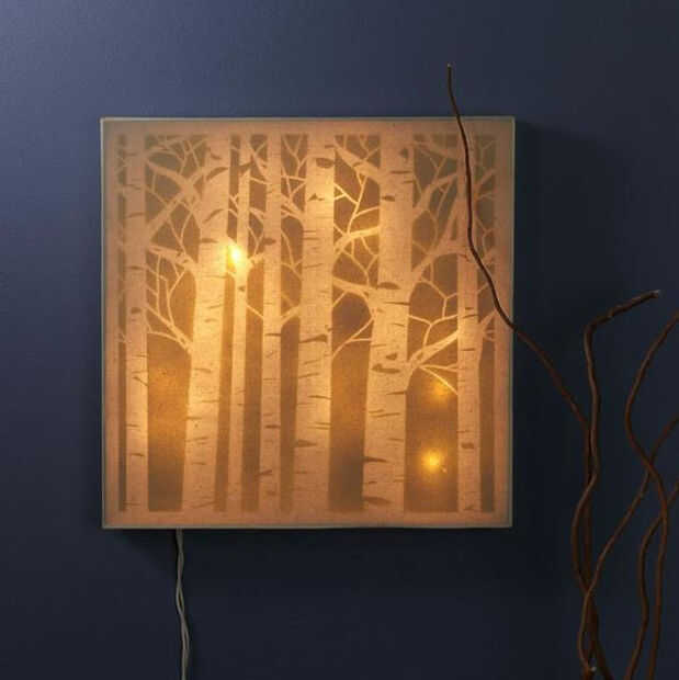 Otras ideas incluyen pintura o aerosol la lona de pintura como se ve por la pieza Aspen árbol. Esto permite que más luz viene a través y crea un look más suave.