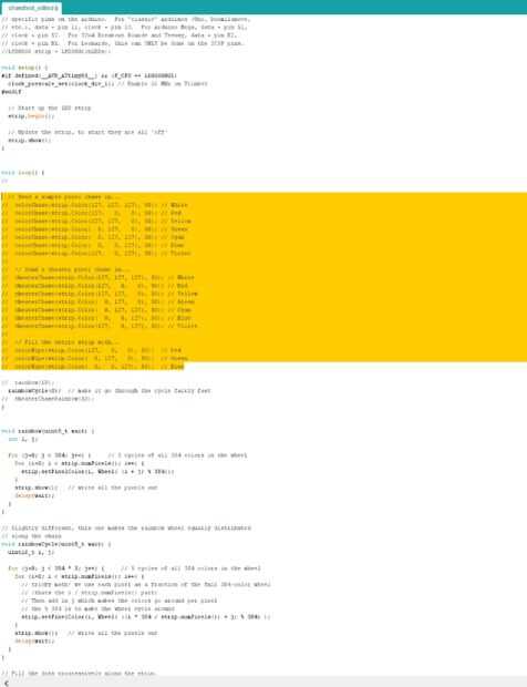 1. en el "void loop()" comente todas las líneas excepto la línea de rainbowCycle
