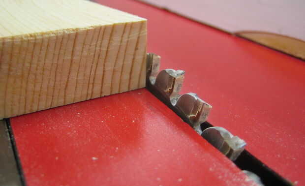 Para hacer esto, primero he quitado el ensamblaje del protector de hoja y bajar la cuchilla para no cortar completamente a través de la madera. (Mi surco era suficientemente baja para que los LEDs son totalmente independiente-si quieres pegar a través de los orificios, puede hacer un surco más profundo con menos material restante).