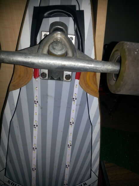 tengo un escritorio con un estante por encima de él, así que hice una tira de la luz que pude poner en la parte inferior de la plataforma a la luz de mi zona de escritorio.  Tuve algunos LED sentados, pero no hay forma sencilla de hacer un circuito p