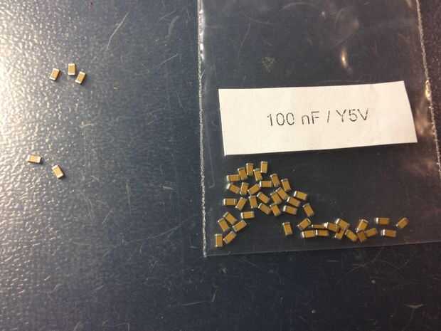 Utilicé el tipo SMD 1206, pero si tienes espacio en la parte trasera para a través de tipos de taladros puede hacer eso también. Entonces podía ser polarizados que mina no era y por lo tanto un poco más fácil de montar.