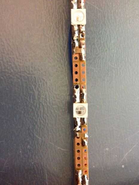 Estos chips trabajan por tener un flujo constante de datos enviados a ellos, por lo que hay potencial para mucho ruido en la fuente de alimentación. Personas han encontrado que hay condensadores en cada pines de fuente de poder ws2812bs para que sea estable en funcionamiento y no se restablece debido a la ondulación de las líneas de energía.