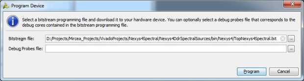 • /Nexys4DdrSpectralSources/bin/Nexys4/TopNexys4Spectral.bit para una tabla de SDMONexys 4 o