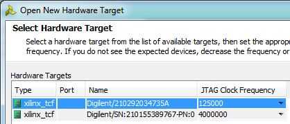 • En el "objetivo de Hardware seleccione" Asegúrese de que seleccione la Junta de SDMONexys 4 (DDR) (sólo si tienes más tarjetas FPGA Xilinx conectados). Haga clic en "Siguiente"