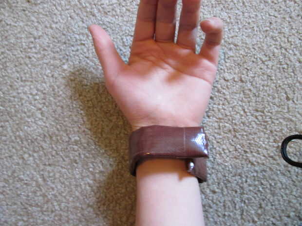 Hola a todos, esta es una nueva idea de mina-es una tira de engranajes, un poco como un lazo de engranaje. Tiene algunos problemas, no es que agarre pero la cosa fresca sobre ella es que puede ajustar espalda recta cuando termines con él. Se hace de cinta métrica, cinta aislante y tubo interior.