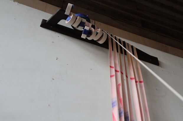 Aferrados todas las tiras de dieciséis en el soporte superior izquierdo, comenzar en cualquiera de los extremos y Desenrolle y coloque la primera tira en el soporte inferior derecha de la misma manera que anteriormente. Desenrollar y colocar cada tira uno por uno hasta que todos los 16 están conectados a ambos soportes.