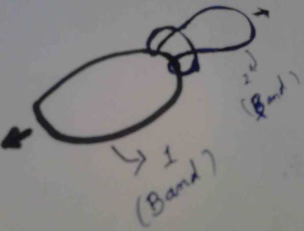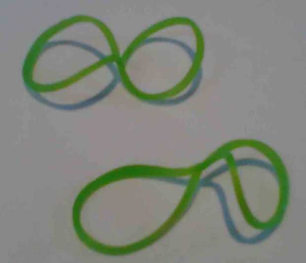 Conectan entre sí dos bandas de goma y hacer un lazo. Del mismo modo hacer otro bucle.