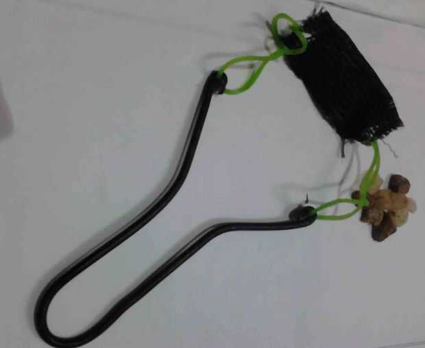 Conecte un extremo de cada lazo de goma para el gancho del asa y presione el gancho para mantener la banda de goma en el lugar, otro extremo en el soporte de paño grueso. Ahora Honda está listo para lanzar municiones hacia tu objetivo.