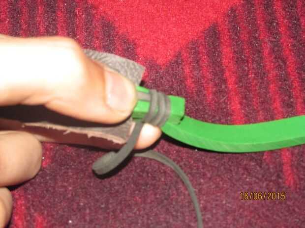 Cortada su goma 2, llevar una de las piezas a través de la bolsa. Cortar una tira fina del tubo interno y dejando cierto exceso, envuélvalo herméticamente alrededor al menos 3 veces.