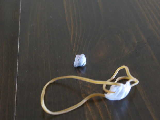 Una pieza rápida de munición es un pequeño trozo de papel, tal vez un 1.5" cuadrado, humedecido y rodó en una bola. Lo voy a seguir a un objetivo. Una cosa más suave sería una bolita de arte borrosa.