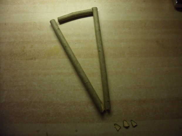 Si eres incapaz de encontrar un palo adecuado que hace de la forma tradicional Y puede utilizar este método en lugar de otro. Encontrar un palo largo y recto sobre una media pulgada de diámetro y cortar en 3 trozos. 2 piezas son cerca de 10 pulgadas de largo, o la longitud entre la curva de su codo y la muñeca. La tercera pieza tendrá que ser de aproximadamente 3 pulgadas de largo. Comience colocando las piezas largo de lado a lado y luego poner un corto extremo a extremo con los largo haciendo una forma del triángulo. Usted tendrá que utilizar un cuchillo o sierra para cortar un punto plano en los lados de un extremo de cada palo largo. Esto ayudará a evitar que tratando de girar y rodar cuando se dispara. Sobre una media pulgada hacia arriba desde el extremo del mismo se deberá cortar una muesca en el lado opuesto de la plana. Esto es donde será envolver un trozo de cordón interior firmemente alrededor de ella usando toda la pieza y manteniendo apretado. Lo amarra y los extremos de la chamusquina. Entonces el pedazo corto y corte una muesca en ella 1/2" desde cada extremo. sólo la muesca debe ser en un lado. Se enfrentará a este lado de las dos piezas largas. La muesca mantiene las cuerdas de deslizamiento y cerrar la brecha cuando disparas. Coloque el palillo corto por el medio de los palillos largos y atar apagado utilizando un método de criss-cross. usar toda la obra de cordón interior para esto y mantener lo mas ajustado posible. Ahora debe tener el marco para su tiro de Honda. Fijar los tubos a él como el mencionado anteriormente y haya terminado.