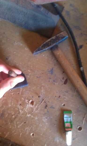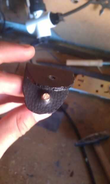 no cuero pero tenía su reposici6n así que pegué 2 de em junto, cortar en forma poner holse en él y utiliza cautín para convertirla en pieza seemles