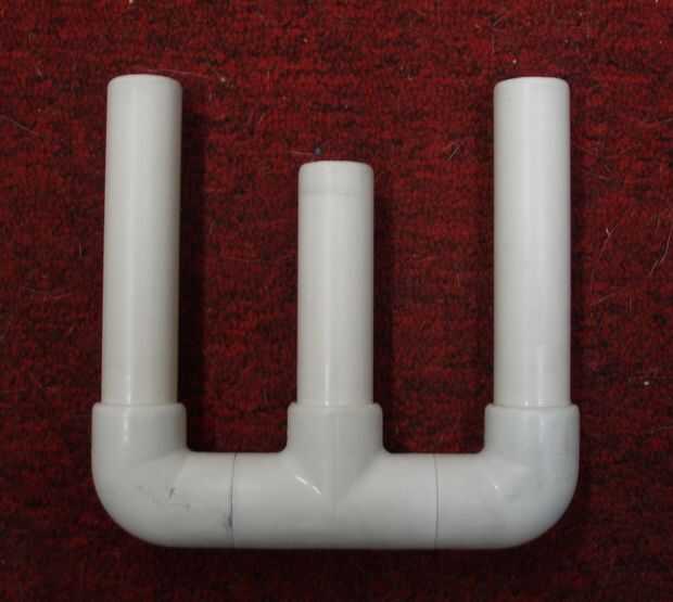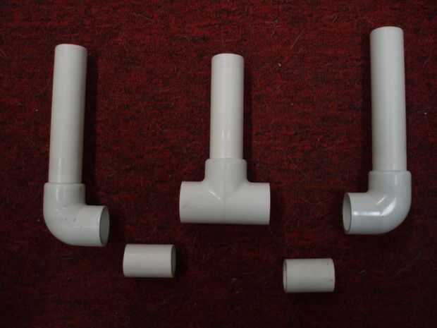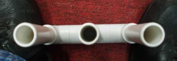 Luego pegue un trozo de tubo de 1.5 pulgadas en la otra apertura de los codos.