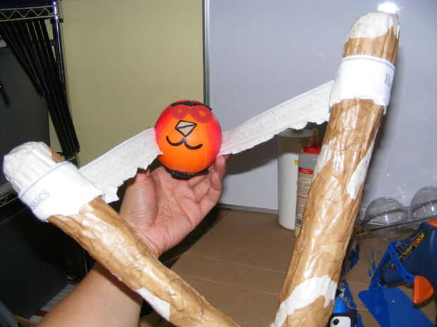 No hay nada más divertido que arrojando objetos de un tirachinas gigante. Bueno, un poco más divertido que eso, está haciendo su propio. Para este proyecto utilizamos algunos restos de madera, un par de 2 x 4 y una banda de ejercicio para hacer un ti