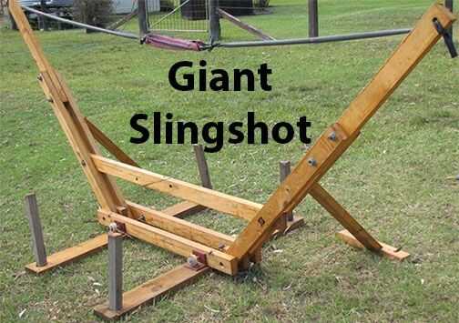 No hay nada más divertido que arrojando objetos de un tirachinas gigante. Bueno, un poco más divertido que eso, está haciendo su propio. Para este proyecto utilizamos algunos restos de madera, un par de 2 x 4 y una banda de ejercicio para hacer un ti
