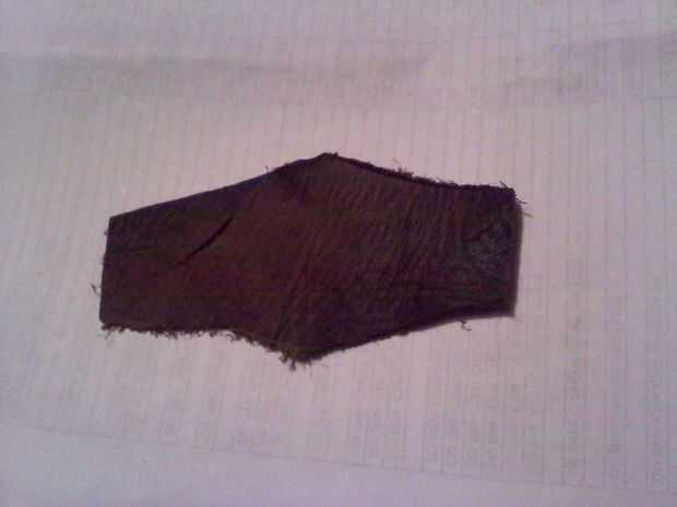 ¿.. .son todos set? Buena. Tomar ese rectángulo de 2 "x 3" de cuero y corte en un patrón del diamante bruto, como tal. Esta forma le dará el bolsillo más profundo para el tiro una vez disparas esta cosa por unas semanas y la piel comienza a estirarse en el medio.