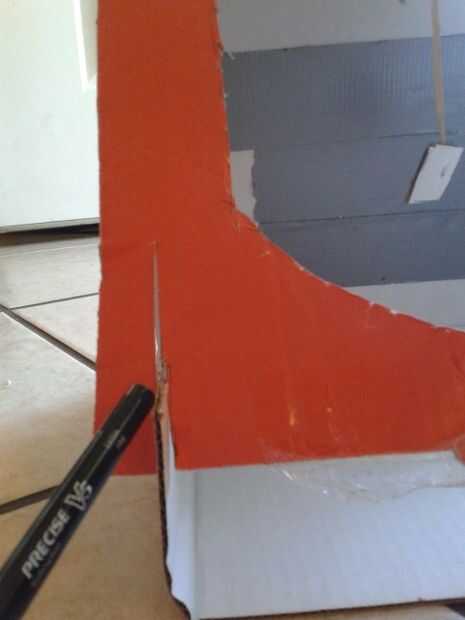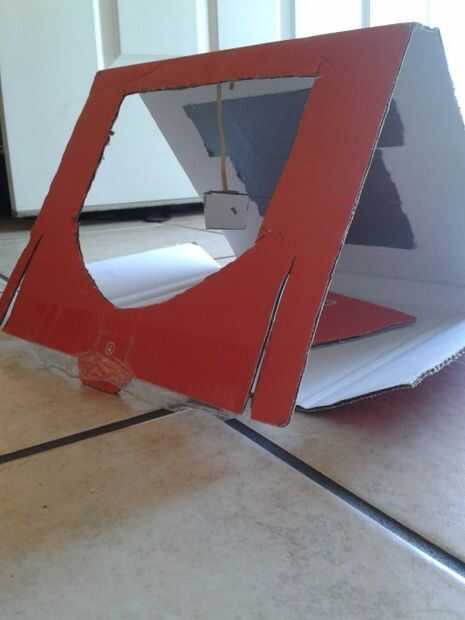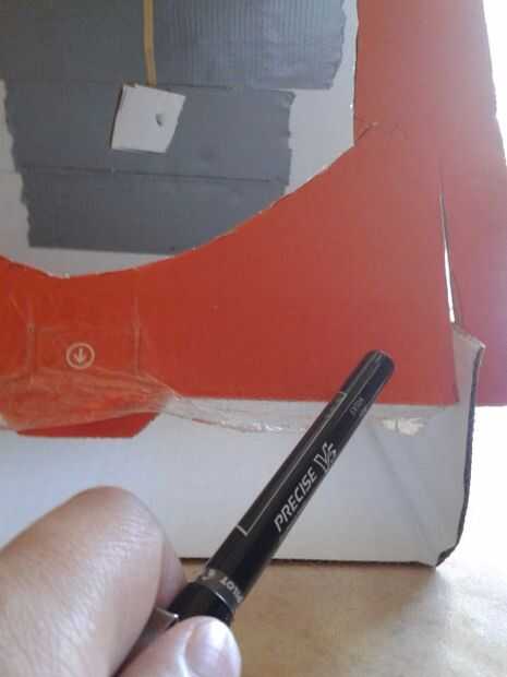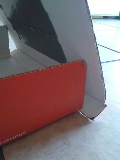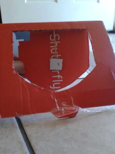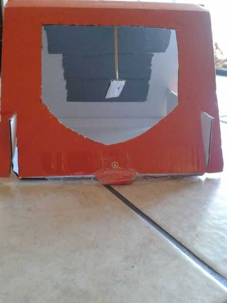 Muy bien, así tienes cosas y su caja de correo electrónico como este. Doble como las fotos que tengo y comienza a parecerse a un cuadro de captura. Marcar dos hendiduras cortar de manera que las aletas de la caja de cuña, sosteniendo la caja en la forma de caja de captura. Corte las ranuras en primer lugar, o no. Je. Después de las ranuras, recorte de la cara de la caja donde están las ranuras tirar en (duh). La forma de recorte depende de ti, iba para un triángulo, pero terminó con un escudo... porque me chupo en cartón de corte.
