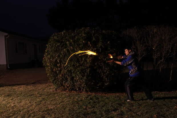 Y aquí estoy estoy sorteando una bola de fuego (ejemplo de cómo puede ser utilizado en una película) (me doy cuenta cómo extraño miro XD):