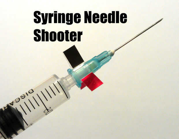 Esto es un tamaño pequeño jeringa aguja o jeringa de dardos. Puede dar en el blanco hasta 15 metros.