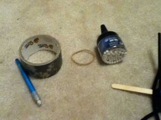 Dispara pequeños pedacitos de palillos/puntas de lápiz y cosas como munición!Se puede hacer esto en < 15 minutos con cosas alrededorTomar precauciones de seguridad y uso de la misma como se dispara de muy lejos la municiónPaso 1: en acciónPaso 2: mat