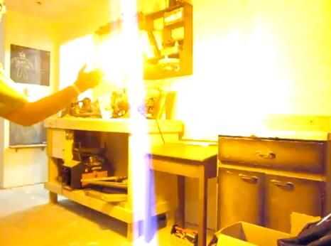 La idea era hacer algo que podría esconder bajo la manga para producir un efecto flash en sin hacer algo tan obvio como pulsar un botón. Para activar el flash, sólo tiene que levantar la mano (que parece ser un movimiento natural, si vas a disparar fuego de él).