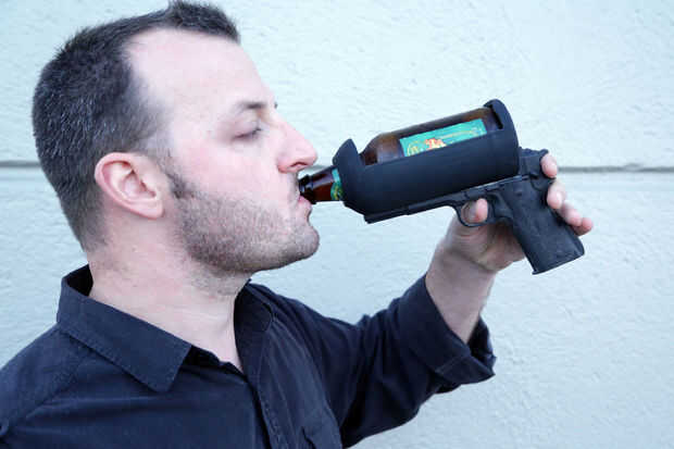 Perpetuar el concepto de armas impresión 3D más allá de la iStab, el tirador de cerveza es una forma novedosa para quitar el dolor y auto medicar con unos tragos (de cerveza) directamente a la boca. Este soporte 3D cerveza impreso utiliza un modelo de un Colt 1911 para sostener la botella de cerveza mientras que sip y es seguro para causar revuelo dondequiera que usted bebe.