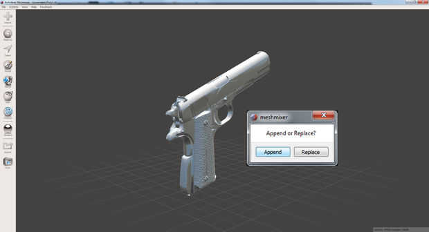 Abrir Meshmixer y abra el archivo 3D de pistola, luego archivo > Importar el archivo de la botella.