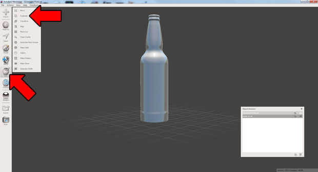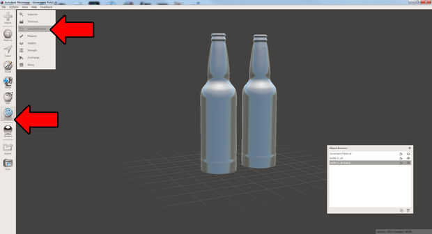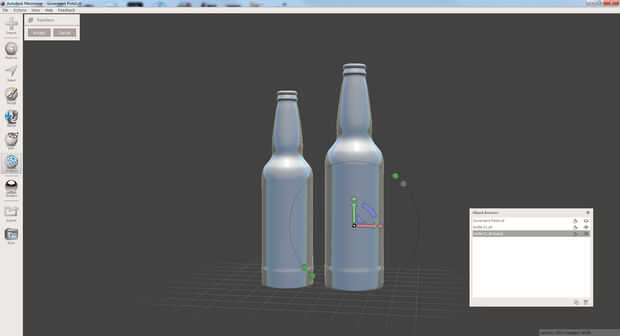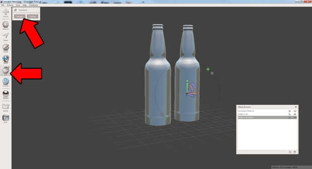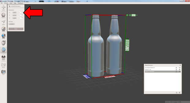 Seleccionar ambos modelos, y de la cinta sobre la izquierda, haga clic analizar > unidades y dimensiones a escala de las botellas con el tamaño correcto de una botella real (que medido para ser aproximadamente 8.5").
