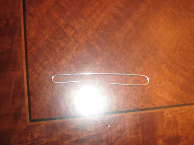 este wiil disparar shishkabob brochetas con 3 capas de cartón y en puertas de madera! Muy sencillo y potente banda de caucho solo 2 partes y cuaderno de papel / mauly clip. No disparar a personas o animales!Paso 1: Paso 1 Envuelva la banda de goma al