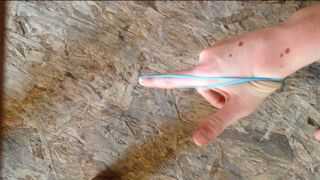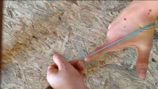 Una vez que ha envuelto alrededor de su muñeca, poner el dedo pulgar hacia arriba en el aire, como va, tire hacia arriba (duro) a dedo puntero y ahí el gancho en una posición estable como en la segunda imagen que se muestra. Si se desliza, recomiendo hacerlo otra vez porque probablemente no es correcto. Mantenga su pulgar en esa posición!