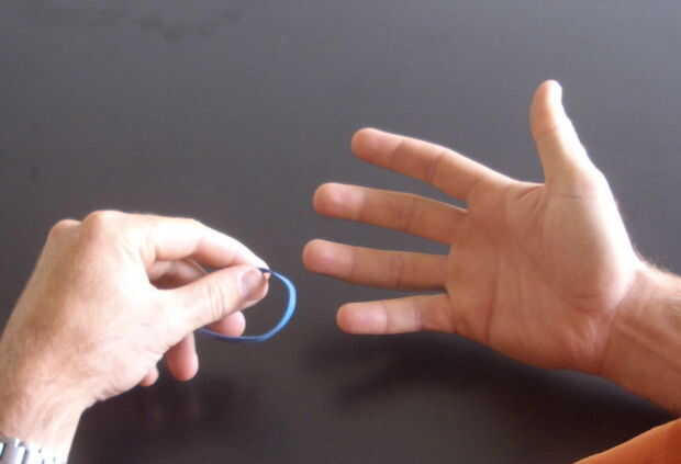 Mi hermano y yo solía tener goma tiro concursos cuando estábamos aburridos, por supuesto él iba a ganar siempre. Pero hace unas semanas me dijo su secreto objetivo y tiro: pistola de goma de una mano. Lo probé y fue el mejor éxito que había tenido.Si